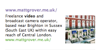 Obviously the first thing I decided to search for was me, see what profiles and sites of mine came up and how high in the rankings. It took a few term variations to find my stuff (not good for starters) and then when I did, there was something not quite right about the results where my actual website was listed. Namely the accompanying pictures.